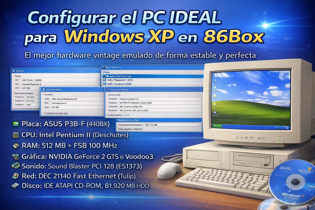 En esta entrada voy a documentar una configuración real, estable y probada para instalar Windows XP en 86Box, pensada para quien quiera recrear un PC clásico de finales de los 90 / principios de los 2000 sin dolores de cabeza.